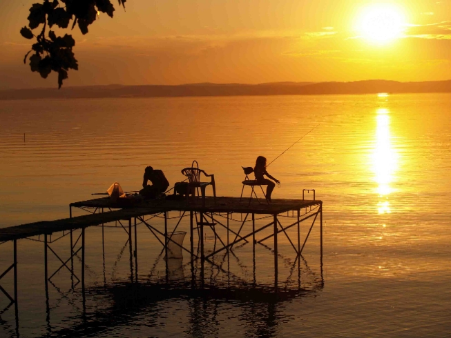 Merece la pena probar suerte en sus lagos -el Balaton, el Velence, el lago Fert?, o el lago Tisza- y las 6.000 hectáreas de embalse creadas gracias al río Tisza que conforman una zona de abundante agua natural, son una oferta diversa de pesca y ocio. También en las ramificaciones del Danubio, en Soroskár y Tass, los alrededores de Györ, Asványráró y las zonas de Baja y Mohács.