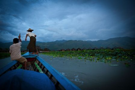 Después de Kalaw fuimos a visitar otro de los lugares imperdibles de Myanmar, el lago Inle. Con sus lanchas y sus motores ruidosos para transitar por el lago, y sus casas apostadas en medio del lago, y sus monasterios, toda la vida de esta zona del país está de una u otra forma dirigida por el lago. Todo gira en torno a él.