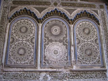 Por lo general, todas las medersas (escuelas coránicas) disponen de sendos patios pavimentados en mármol o en ónice y a través de sus puertas entreabiertas, rejas y celosías escapan tímidos rayos de luz que iluminan su apacible interior. Espacios que rezuman sosiego y espiritualidad, sólo truncado ocasionalmente por las infantiles voces que entonan salmos y suelen vibrar como cuerdas de un instrumento musical. Son los lazos que unen a un pueblo con su cultura, a la tierra con el cielo, a la materia con el espíritu.